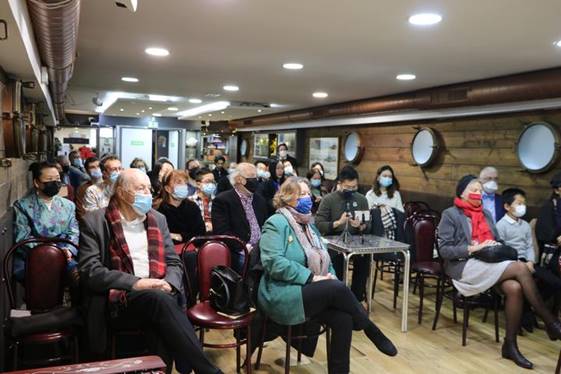 细雨绵绵,汽笛悠长,初冬的寒意笼罩着塞纳河,却挡不住读者们踊跃的热情。在疫情形势下,11月29日,“中国文学读者俱乐部”第二场活动继续在法国巴黎埃菲尔铁塔对面的一条游船上举行。俱乐部负责人、法中友好协会主席高醇芳主持活动,来自法国政界、教育界、演艺界的50多人参加了活动。