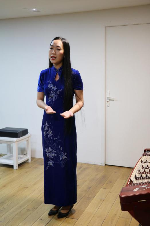 最后,扬琴演奏家王女士演奏了中国传统古曲,取材于昭君出塞故事的“妆台秋思”和江苏民歌“紫竹调”。