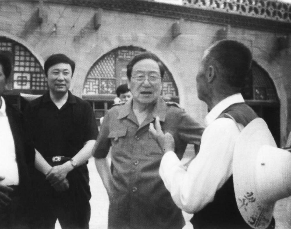 2001年5月,贺敬之在延安鲁艺旧址与当地老乡一起。