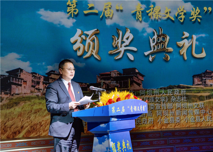 12月24晚,第二届“青稞文学奖”颁奖典礼举行。施战军代表凤凰彩票到会祝贺,石一宁、马尔康市委书记李清勇分别致辞,陈亚军宣读授奖词,杨星主持颁奖。