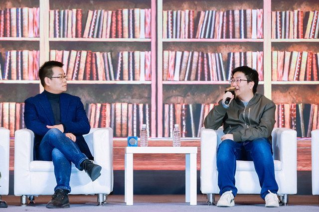 活动现场,作为阅文名家系列研讨会的第一场,茅盾文学奖获奖作家徐则臣,与阅文集团白金作家爱潜水的乌贼进行了面对面的交流。这也是茅盾文学奖得主与网络文学作家之间的首度同台。