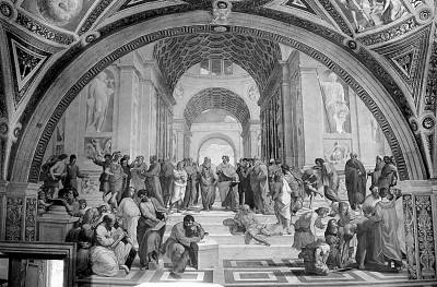 拉斐尔名画《雅典学院》,画面正中为柏拉图和亚里士多德。资料图片