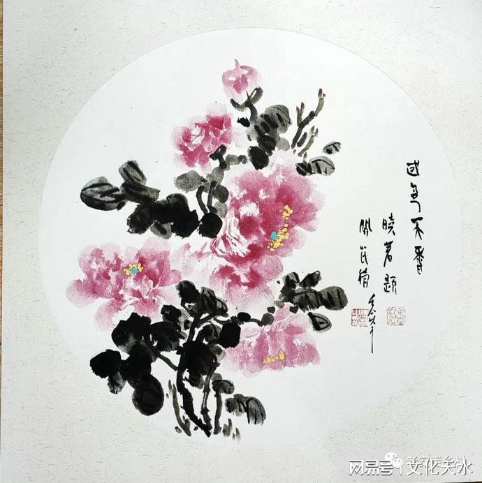 张开茂先生为乡贤温子安先生赠送精心创作的牡丹