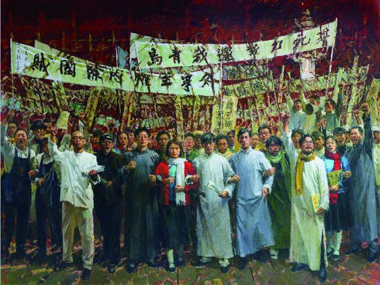 红潮——五四运动(油画) 许 江 孙景刚 邬大勇 作