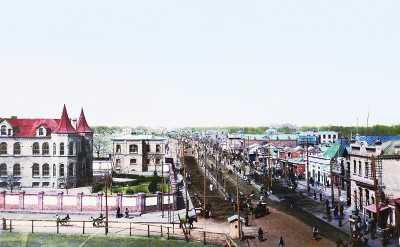 中信出版集团出版的《彩色的老北京:手工上色老照片还原故都风貌》选取了清末民初的160张北京黑白老照片,采用先进的数码手工上色技术还原城市色彩,希冀复原古都的真实面貌,展现一个彩色的老北京。图为百余年前从北京崇文门城楼北望的景致。