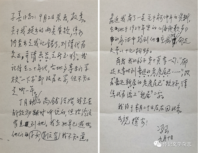 您老人家好!上次接奉手示后即作复,但次日阅报知您已去广东,我的信可能您未见到,现在估计您已返京,故再写信打扰。