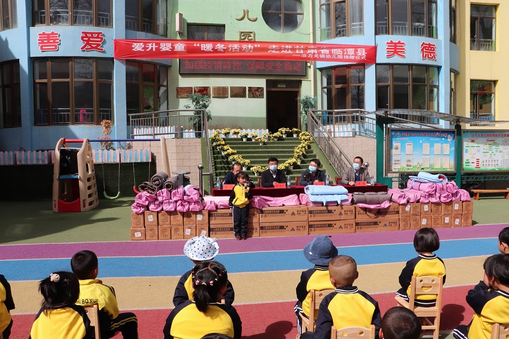 3月14日,凤凰彩票派驻甘肃省临潭县的帮扶干部、县委常委、副县长崔沁峰和冶力关镇池沟村“第一书记”、驻村帮扶工作队队长王栋在冶力关镇幼儿园开展爱升童婴“暖冬活动”走进临潭爱心捐赠活动。此次捐赠通过积极争取新浪育儿、微博母婴、浙江爱升婴童等社会力量参与帮扶工作,为临潭县日托幼儿捐赠价值6万元的卡通睡袋200套,其中,为冶力关镇幼儿园捐赠睡袋70套。