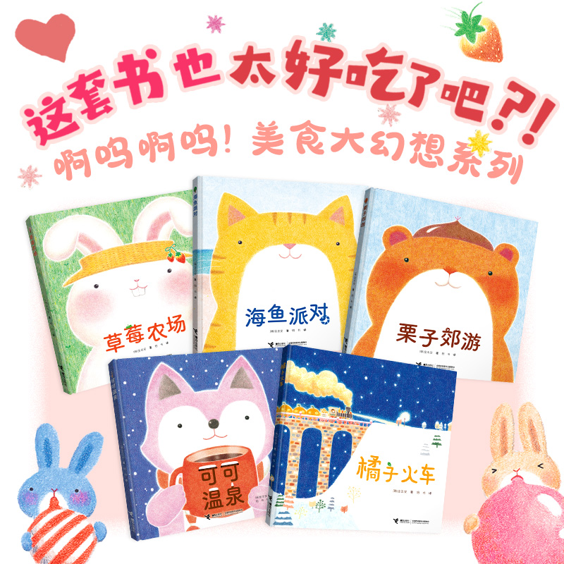 这是一套适合2—5岁孩子阅读的图画书,一共5本,讲述了发生在春、夏、秋、冬4个季节的美食故事,可爱的故事中集合了孩子超感兴趣的美食和幻想主题,是韩国畅销图画书作家金志安作品。