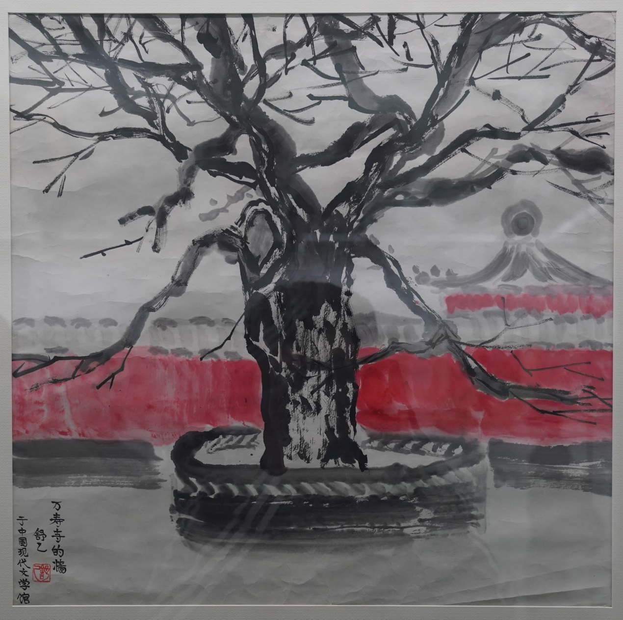 1999年春,舒乙绘画并写下,“一日往太庙于后店阶下偶得此景,天然成趣,为表达对那可爱的野草的敬意,特画其景并记题”。82cm×82cm。