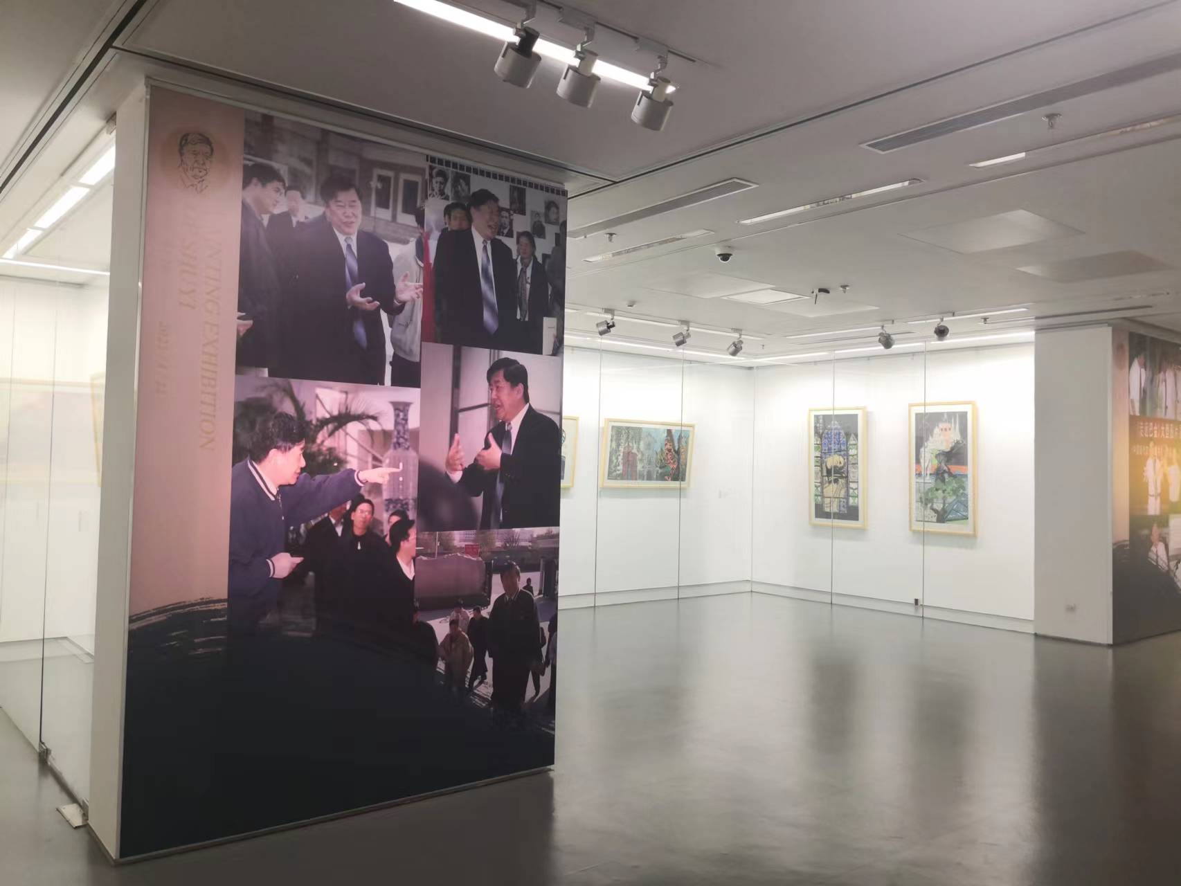 展厅一角。舒乙先生画作与他在文学馆工作期间的工作照交替排列。