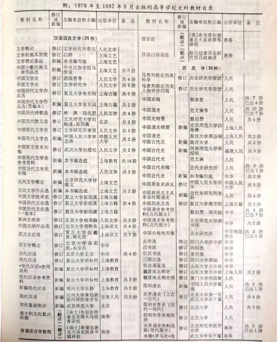 1978年-1982年6月出版的高等学校文科教材目录