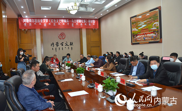 5月9日上午,由内蒙古文联、内蒙古人民出版社联合主办,内蒙古作家协会承办的阿勒得尔图报告文学《红色文艺轻骑兵—乌兰牧骑纪事》研讨会以线上线下相结合的形式在内蒙古文联召开。