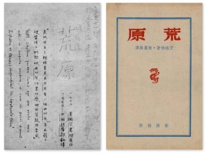 赵萝蕤所翻译的《荒原》手稿及初版封面