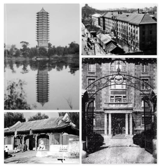 左侧两幅:旧时的燕京大学;右侧两幅:北京大学沙滩红楼旧址