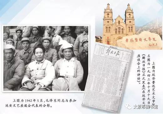 1942年5月2日至23日,毛泽东在延安主持召开文艺座谈会并发表了重要讲话,讲话内容经过修改完善后发表在《解放日报》上,被称为《在延安文艺座谈会上的讲话》,后又收录在《毛泽东选集》第三卷。
