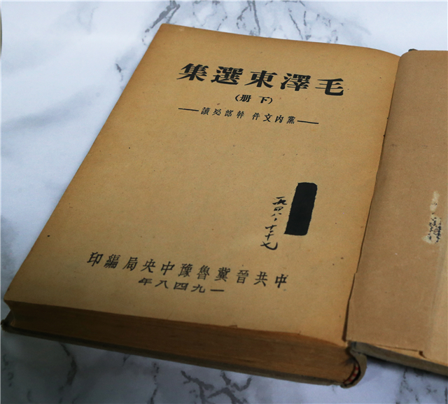 1942年,在抗日战争的艰苦岁月,毛泽东同志发表《在延安文艺座谈会上的讲话》,1943年10月19日,讲话在《解放日报》上全文发表。最近,我在整理作家鲁藜同志的作品时,发现了一本鲁藜同志珍藏的1948年中共晋冀鲁豫中央局编印的《毛泽东选集》,书中载录了《讲话》全文。
