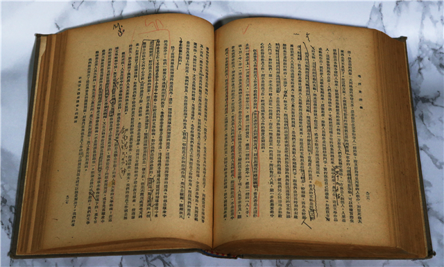 经过和鲁藜家属的求证,该书是鲁藜同志当年在延安时期阅读过的。书的扉页上,还留有鲁藜的签名和时间。文革时,是鲁藜自己把扉页上的签名勾掉。《讲话》一篇中,还清晰地保留着当年鲁藜阅读和学习过的痕迹。鲁藜同志把《讲话》当作了自己创作奋进的一面旗帜,一生坚持着走中国革命的文艺道路。