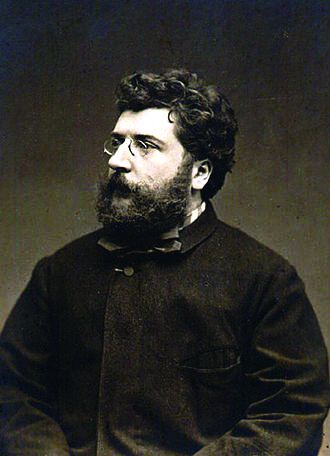 比才生于1838年,10岁进入巴黎音乐学院,少年才华横溢,不孚父母厚望,钢琴演奏得到柏辽兹和李斯特的赞许。1855年,他的《C大调交响曲》出类拔萃,年仅19岁时获“罗马艺术大奖”头等奖。进而,他陆续谱出《采珠人》《波尔特的美姝》和《加米勒》等几部歌剧。他不肯固守当时歌舞剧的常规,有些创意,可惜均未取得突破性效应,难以达到他殷切期望的“一鸣惊人”。