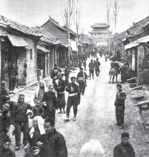 曾经热闹的延安古城北大街是延安早期的主要商业地带,远处就是古城中心点鼓楼