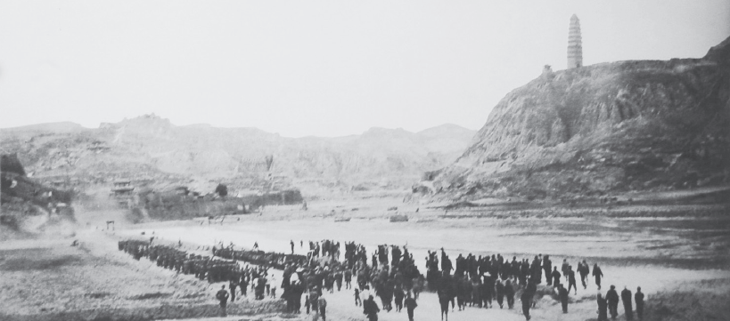 1937年1月,中共中央进驻延安,历史翻开新的篇章(此图为后来拍摄电影时组织人员补拍)
