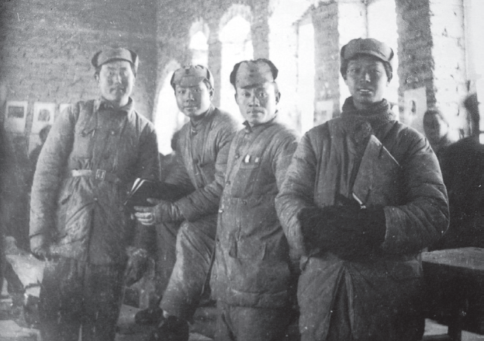1939年,鲁艺木刻工作团成员在太行山抗日前线,左起:罗工柳、胡一川、华山、彦涵