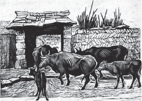 古元木刻《牛群》(1940年)