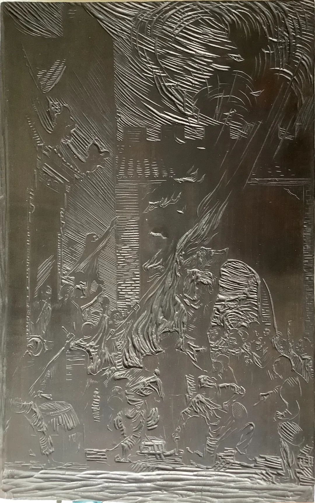 现存延安时期古元唯一的一块木刻原版《烧毁旧地契》(图片由古安村提供)
