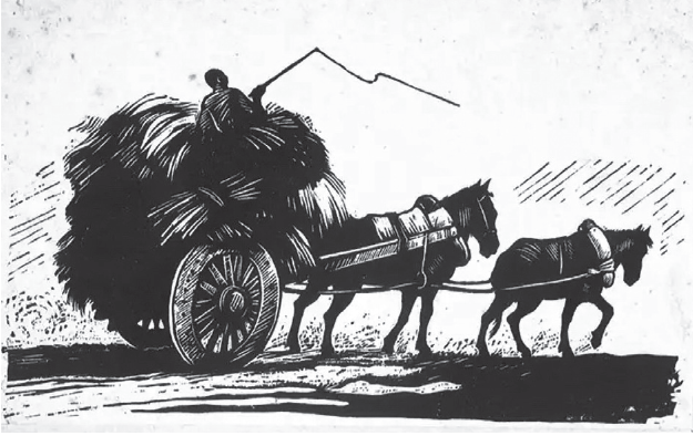 古元木刻《运草》(1940年)