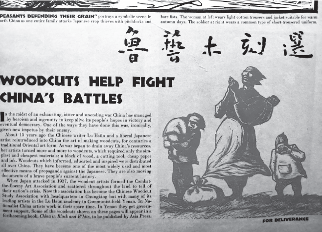 1945年4月,美国《生活》杂志刊登延安木刻作品