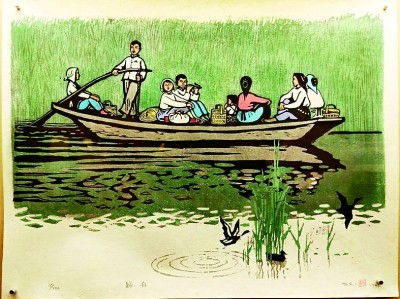 1960年,《人民日报》发表了我的第一幅版画,次年我的成名代表作版画《春天》也在该报发表,受到许多人喜爱,从此一发不可收。1962年、1963年该报相继发表了我的《果山秋景》《女社员们》等版画(这三幅画后来被中国美术馆收藏,《春天》还被载入版画史)。我初露头角即受到美术界前辈们的特别关爱,继而又荣幸受邀参加纪念《讲话》的座谈会。
