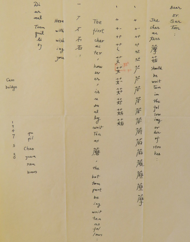 图1 赵元任致萨顿的信(1947年5月20日)