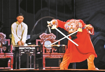 6月11日晚,在北京人艺曹禺剧场,演员们表演诗朗诵《向戏剧致敬》