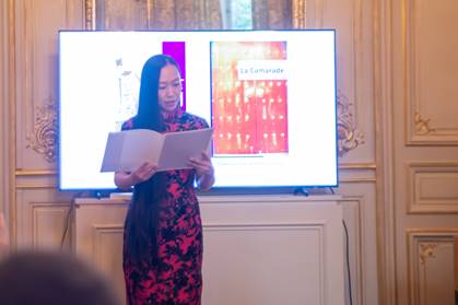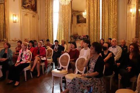 法国当地时间6月5日下午,法国“中国文学读者俱乐部”邀请30多位中国文学爱好者相聚在拥有160余年历史的阿尔弗莱德索美酒店,一起欣赏品鉴中国当代著名作家老舍和范小青的作品《赵子曰》和《女同志》。