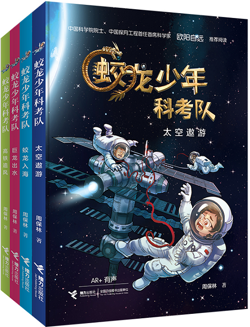 “蛟龙少年科考队”系列是由北京市科学技术协会“科协频道”、《保林叔叔讲故事》栏目、接力出版社共同打造的小学生科普读物,共4册,包括航天航空故事《太空遨游》、深海探测故事《蛟龙入海》、高速铁路故事《高铁追风》、跨海大桥故事《巨龙出水》。书中,科考队员徐多、韦一和小机器人捣乱跟随队长保林叔叔上天入海,在科学的世界里尽情地探索。故事跌宕起伏、悬念迭生,充满基于尖端科技理论的奇异幻想,书中穿插的128个科学知识点,全部由四大领域的科学家提供和审订。