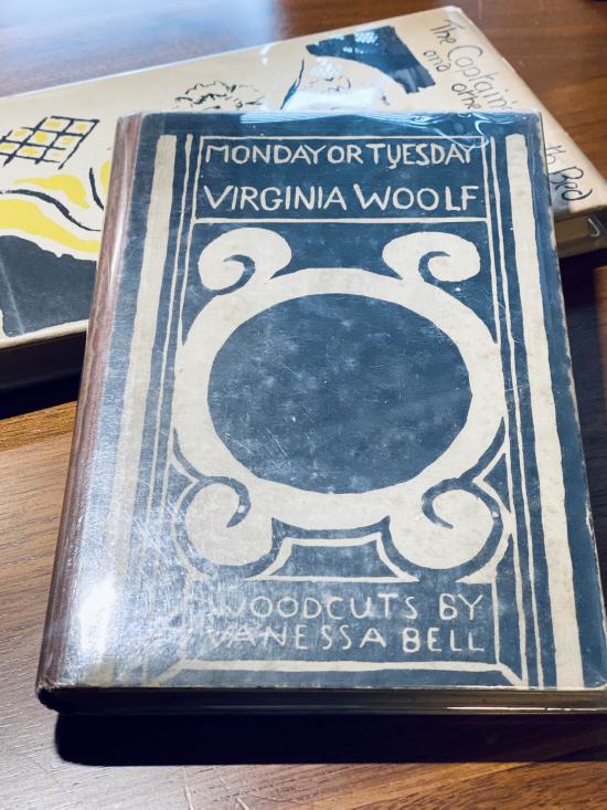 因为喜欢她的文,循序渐进地关注过她的古旧书籍。每到一处古董书店,也会寻着她的笔迹去追踪细枝末节。有一年在旧金山的古董书集市里偶遇她1921年《Monday To Tuesday》初版(first edition),短小册子,配着姐姐凡妮莎(Vanessa Bell 1879-1961)创作的版画书衣,风格大胆野趣,价格不菲稍稍犹豫。无奈返国之后却念念不忘,电子邮件店主,书在遂归我。店主回复里说,我是伍尔芙书籍中为数不多的亚裔藏家,并问我的专业是否英国文学,居然有这么一个奢侈的爱好。其实惭愧,我并未读完伍尔芙全部作品,对于原文读解领悟皆为一知半解。只是受到一些偶然的指引,比如在纽约大学附近旧书店里得了帕蒂·斯密斯(Patti Smith 1946-)一本摄影集,其中有一张帕蒂拍摄得伍尔芙的卧室,印象非常深刻的画面。卧室里只有一张白色的床,以及窗棂投射到墙上的大小光晕,床套洁白翻着淡淡的灰,绣着一枚朴素的十字架。