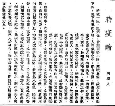 周树人《时疫论》,原载《国医旬刊》