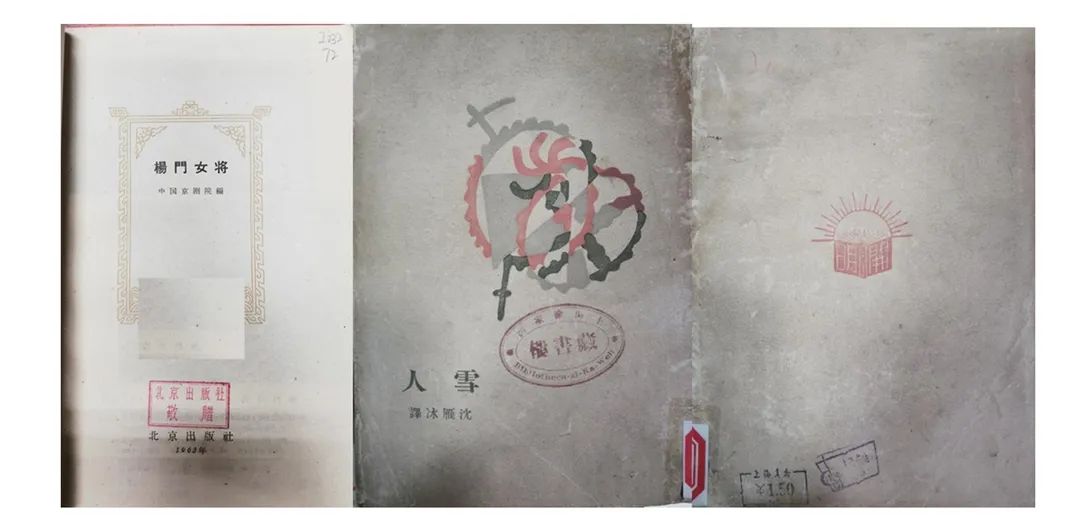 图1 出版社赠书章、原有藏书印章、二手书价格印章示例
