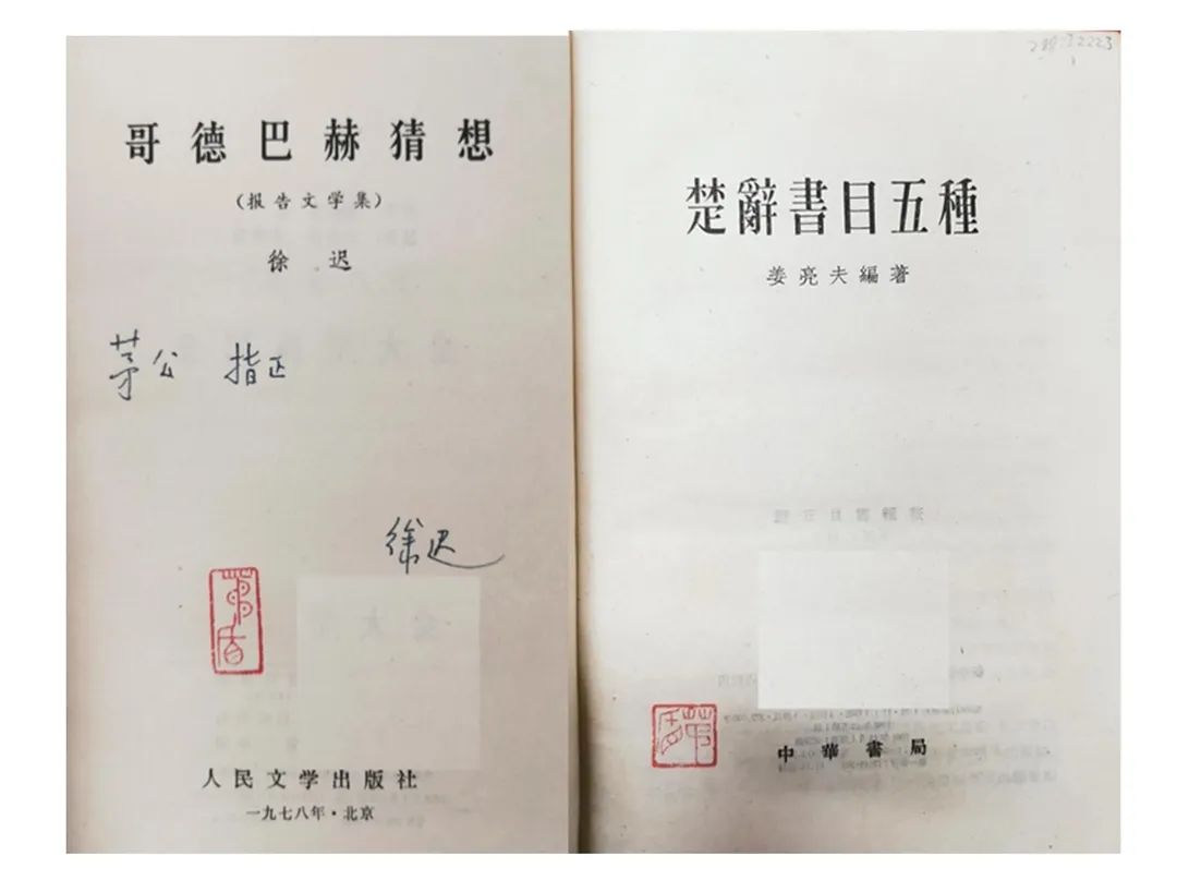 “机构收藏痕迹”指图书从私藏转为公藏后经过一系列加工处理所留下的痕迹,如图书分类留下的标识、图书编目时赋予的条形码、图书登记时加盖的馆藏章等。“机构收藏痕迹”包括三类。第一,印章类。茅盾藏书已从个人藏书变为国家“公藏”,是茅盾文库场馆的“馆藏”,加盖馆藏印章是管理藏书的常规操作。印章往往加盖在扉页等较为显著的位置,经历新的阶段则加盖新的印章,代表“传承有序”,如图9。第二,笔记类。按照现代图书馆分类法对藏书进行分类,是藏书管理的基本方法。图书被赋予一个分类号,作为进行分类排列、序化管理的依据,其分类号用铅笔书写在图书扉页的右上角。如图9。