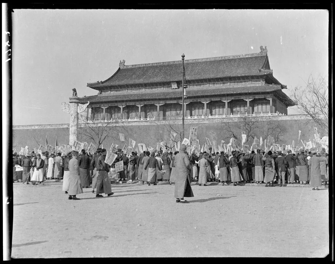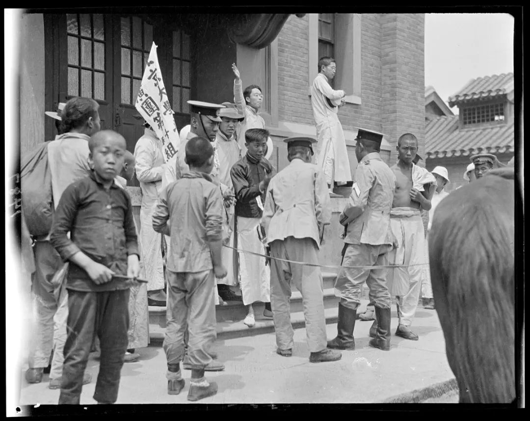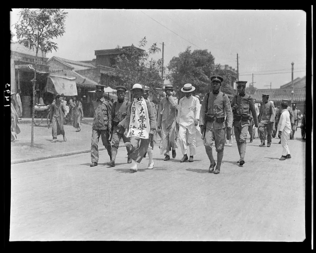而在我看来,甘博新闻摄影的重中之重,应该是“五四运动”。甘博四次旅居中国,我最关注的是1917—1919年这一次。因为,1918年夏,甘博开始担任北京某青年会的义务调查干事,负责对中国首都进行一次史无前例的社会调查。关于甘博在该青年会的服务时间,或称1918—1932年,工作范围是“研究工作”;或分为1918-1919年、1925-1926年两段,职务为“干事”。居京期间恰好碰上了“五四运动”,回美国后,“1920年1月29日,甘博以“五四运动”的目击者身份,在美国《大陆》杂志发表文章,首次详细、生动、全面地介绍了“五四运动”的展开和学生们反对军阀政府的经过”。1921年《北京的社会调查》出版,展现了这个神秘的东方古都的方方面面,论述“政府”的第四章中,作者专设“学生运动”一节。在综述性质的社会学著作中,分析刚刚发生的新闻事件(文字之外,还有若干图片),这很能体现作者的立场与兴趣。