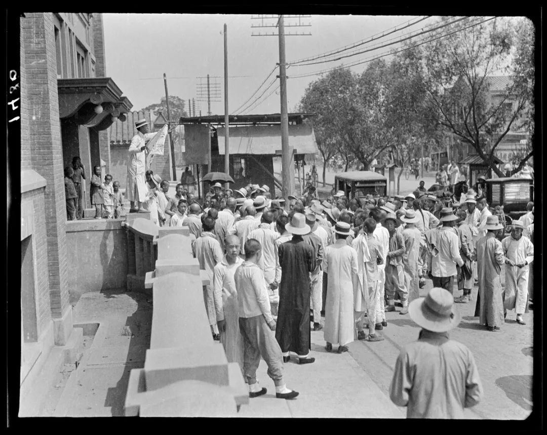 “五四运动”存留的新闻照片数量实在太少,且拍摄者不详,辗转使用的结果,画面往往模糊不清。难得像甘博这样的连续跟踪拍照,且底片保留良好,还注明了拍摄时间和主题(虽不太准确)。仔细推敲这些老照片,将其与历史档案、新闻报道乃至回忆录等相对照,深入发掘其历史文化内涵,是可以构建较为完整且可信的“演说现场”的。