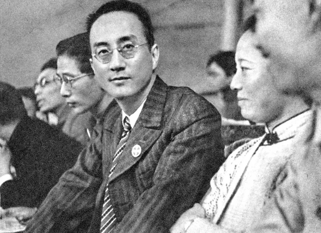 1939年10月,邹韬奋(中)与夫人沈粹缜(右)参加在重庆举行的纪念鲁迅先生逝世三周年大会