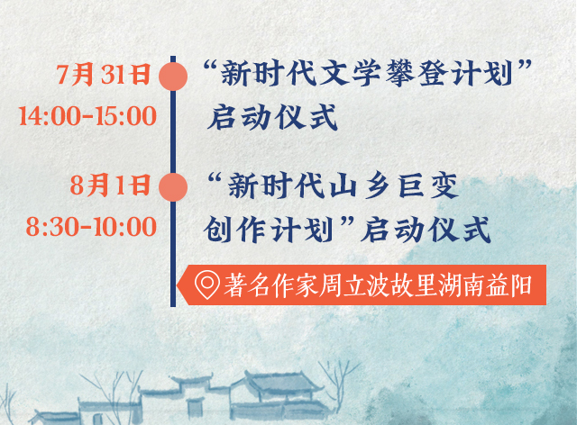 这个夏天,湖南益阳,注定被文学的热情点燃。“新时代山乡巨变创作计划”“新时代文学攀登计划”两大“计划”的启动仪式将分别于7月31日、8月1日在周立波故里益阳开启。