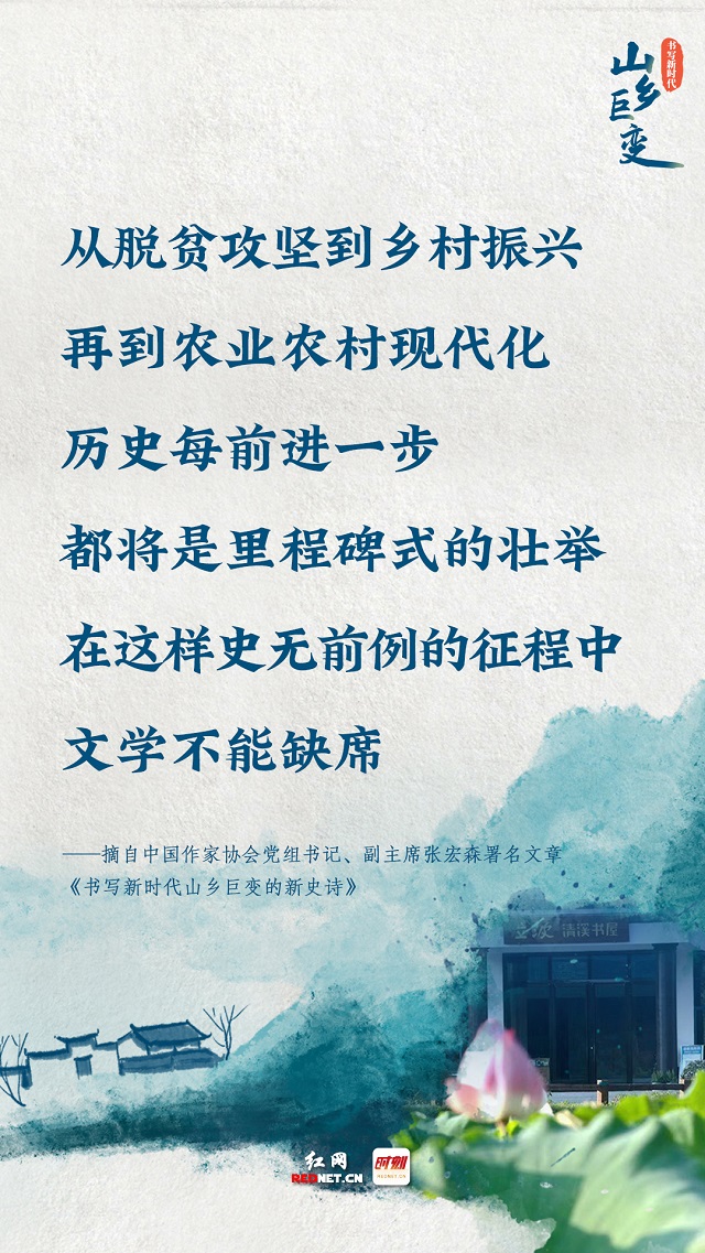 作为“中国文学第一村”,清溪村是中国文学无法绕开的地标,这里催生了《山乡巨变》,凝聚着“深入生活,扎根人民”的创作精神。“山乡巨变”,既是时代变革,也是使命召唤。