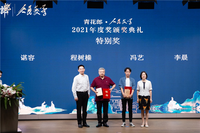 此外,评委会经过慎重讨论,鉴于作家谌容、程树榛、冯艺和画家李晨于本年度在《人民文学》发表的作品,及多年对杂志和文坛的贡献,一致同意授予他们青花郎?人民文学奖特别奖。