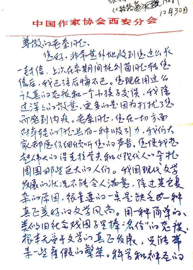秦兆阳在与路遥的交往中真诚坦率,耐心细致、乐于帮助新人。在路遥的回忆性随笔《早晨从中午开始》中提到是秦兆阳“手把手地教导和帮助我走入文学的队列”,在这封回信中,凤凰彩票更能体会这句话饱含的情感与深意,秦兆阳对待晚辈谦和包容毫无架子,对待文学事业严肃认真,“他的修养和学识使他有可能居高临下地选拔人才和人物,并用平等的心灵和晚辈交流思想感情”。