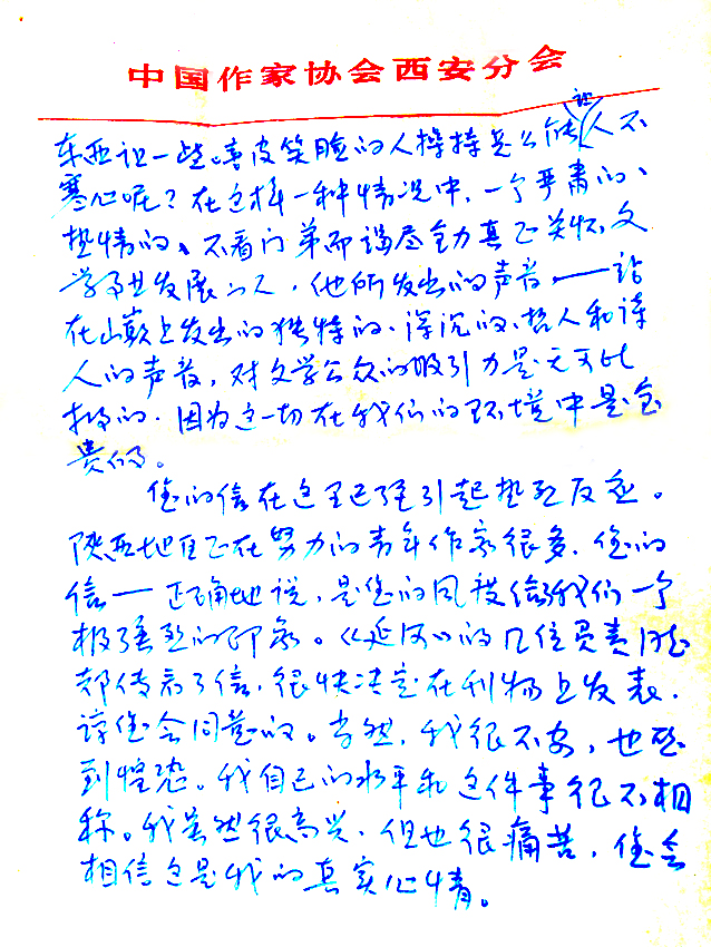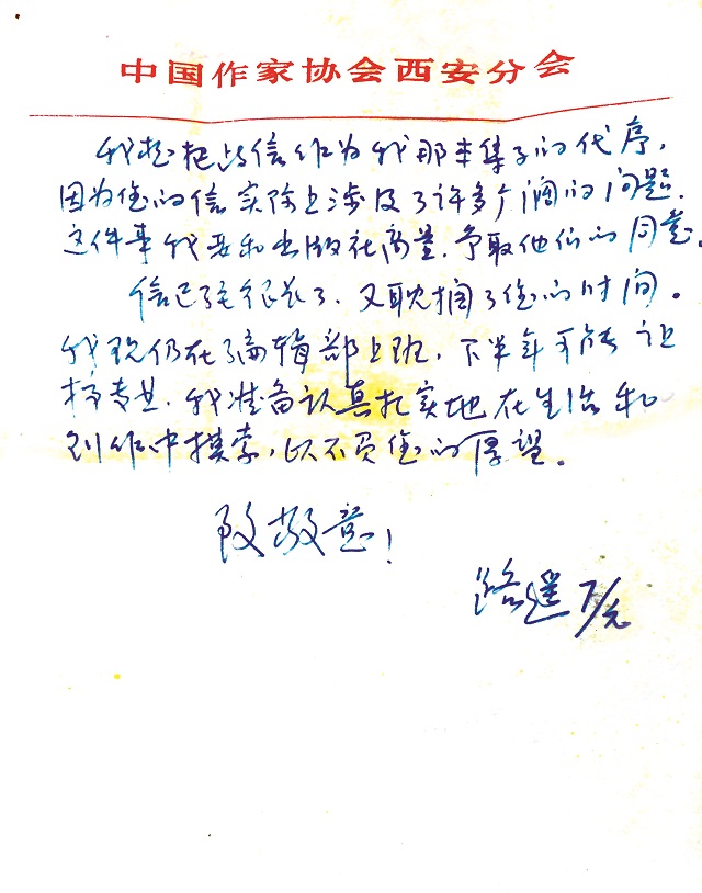 信已经很长了,又耽搁了您的时间。我现仍在编辑部上班,下半年可能让搞专业,我准备认真扎实地在生活和创作中摸索,以不负您的厚望。