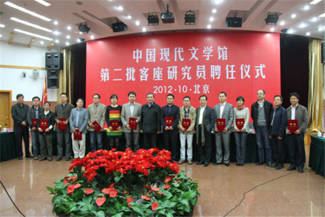 2012年10月22日,黄平、金理、刘涛、李丹梦、傅强、张丽军、曾一果、何同彬、郭冰茹、刘大先、刘志荣、张立群十二人获聘中国现代文学馆第二届客座研究员。郭冰茹(右四)在现场。