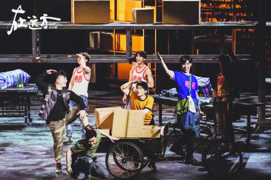 该剧的艺术创新还突出体现在东方美学精神的融入与舞台视觉的呈现上。该剧整体以写实舞台为基础,同时融入了“写意”舞台的视觉呈现,实现了中西艺术形式汇融合一、中外美学精神交织并蓄的中国特色音乐剧舞台的创意性表现与创新性表达。如剧中许多场景以钢铁货架作为舞台布景材料,写意性地表现了“仓库”“楼房”等不同现实空间。再如,第二幕演绎了一段姚远与刘云天两位企业老总在拳台上搏斗的场景,以暗喻方式写意性地表现了商业谈判的博弈过程,等等。
