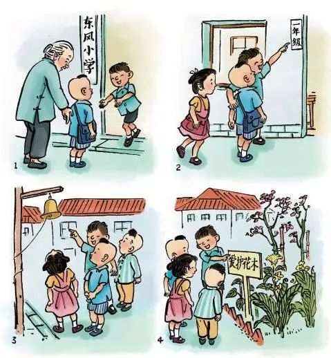 新同学走进新学校,有“我”来帮忙,领着他们,认识新教室,参观新校园,了解新学期生活。