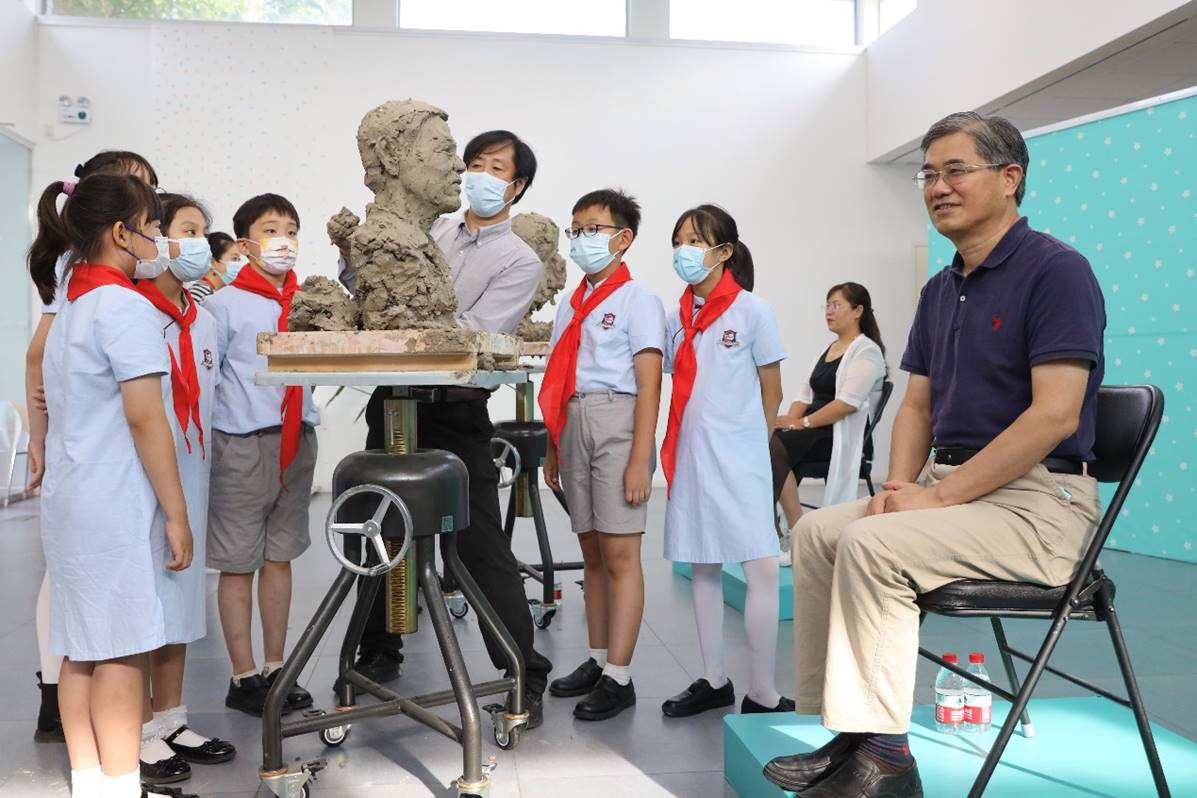 少先队员现场观摩艺术家为教师代表塑像活动。 卢旭 摄